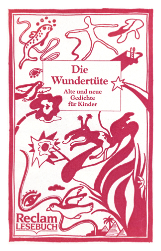 Als 1989 "Die Wundertüte" im Reclam Verlag ihren Titel bekam, war offenbar nicht bekannt, dass es 1955 in der DDR schon einmal "Die Wundertüte" gegeben hatte, in zwei Bänden. Es war keine Kinderlyrik Anthologie, sondern ein Mix aus verschiedenen Textsorten, wie das Titelblatt zeigt. Im Unterschied zu dem großformatigen Band (21x29 cm) mit seinen 143 Seiten ist die westdeutsche "Wundertüte" wahrscheinlich die kleinste und eine der umfangreichsten Sammlungen (10x16 cm), Reclam-Format eben.